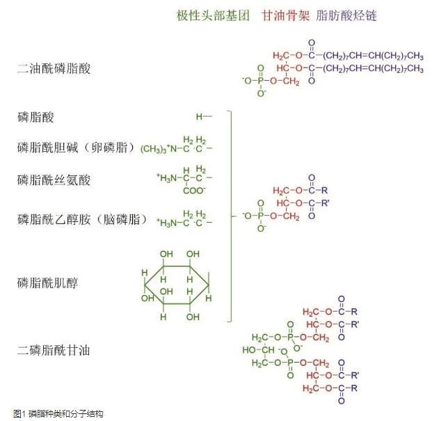磷脂作為雙親性分子,是一種有代表性的表面活性劑。磷酸甘油酯(phosphoglycerides,PG)是磷脂的主要存在形式,其分子包含一個親水極性頭部和兩個疏水尾部,甘油骨架上1和2位羥基被脂肪酸酯化,3位羥基被連有其他基團的磷酸基酯化(如圖1所示)。磷脂的表面活性與疏水脂肪酸的種類和親水端磷脂酸的極性有關(guān),通常以芘探針法測定臨界膠束濃度表征其表面活性。隨著界面張力儀的應用開發(fā),采用Wilhelmy吊片法測定磷脂溶液的表面張力等溫線能夠獲得更多的分子性質(zhì)信息,如表面超量、臨界膠束濃度以及分子橫截面積等,這對于選擇磷脂種類、設(shè)計新型磷脂分子構(gòu)建新型藥物遞送系統(tǒng)具有一定的指導意義。