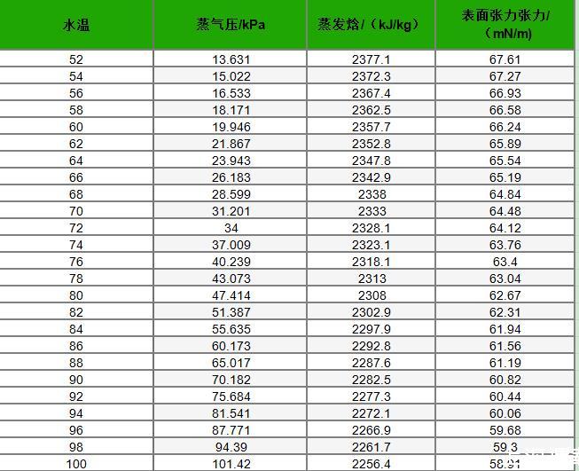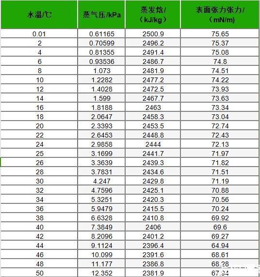 不同溫度下水的蒸氣壓、蒸發(fā)焓及表面張力