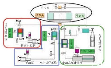 潤(rùn)濕性及界面張力儀主要包括常溫常壓型、高溫型、超高溫型、便攜型,其中高溫高壓型潤(rùn)濕性及界面張力儀能夠真實(shí)模擬油藏條件測(cè)量接觸角和界面張力。為了擴(kuò)展高溫高壓潤(rùn)濕性及界面張力儀可以測(cè)量二氧化碳與原油最小混相壓力功能,且可以使常溫凝固的稠油等樣品,實(shí)現(xiàn)順利進(jìn)樣測(cè)量和測(cè)量,需要對(duì)現(xiàn)有設(shè)備進(jìn)行改造。通過增加高溫高壓氣體進(jìn)樣系統(tǒng),改進(jìn)原有油相、水相進(jìn)樣系統(tǒng),使其功能得到擴(kuò)展。