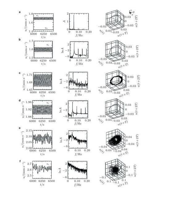 (2)目前關于液層界面張力梯度驅動對流向湍流的超臨界轉捩在數值方法上主要有流動時序數據的分析和分岔問題的數值算法。流動宏觀量的時序數據來自實驗結果或者直接數值模擬,對于后者,需要對于不同參數分別進行數值模擬,再通過時間序列頻譜及其混沌特性的定量計算分析流動轉捩規律,即在大量的離散的數據序列中尋找分岔點,故此過程比較繁瑣。而通過構造分岔方程對分岔進行數值計算的方法雖然可以一步到位,但是在選取分岔方程,解高維線性、非線性方程等過程中均需要根據具體的流動模型進行調整,具有一定難度,且對于更加復雜的流動模式需要更大的計算量,用此算法也無法直接計算得到混沌解。上述兩種方法各有優缺點,目前在轉捩過程的數值研究中較為常用的仍是在不同參數下進行直接數值模擬,而后對大量數據進行頻譜分析,識別分岔點;在直接對分岔進行數值計算的研究中,也常常需要通過直接數值模擬來驗證分岔得到的解的可靠性與準確性,在今后的研究中可考慮進一步將兩種方法結合運用,互相補充、驗證。
