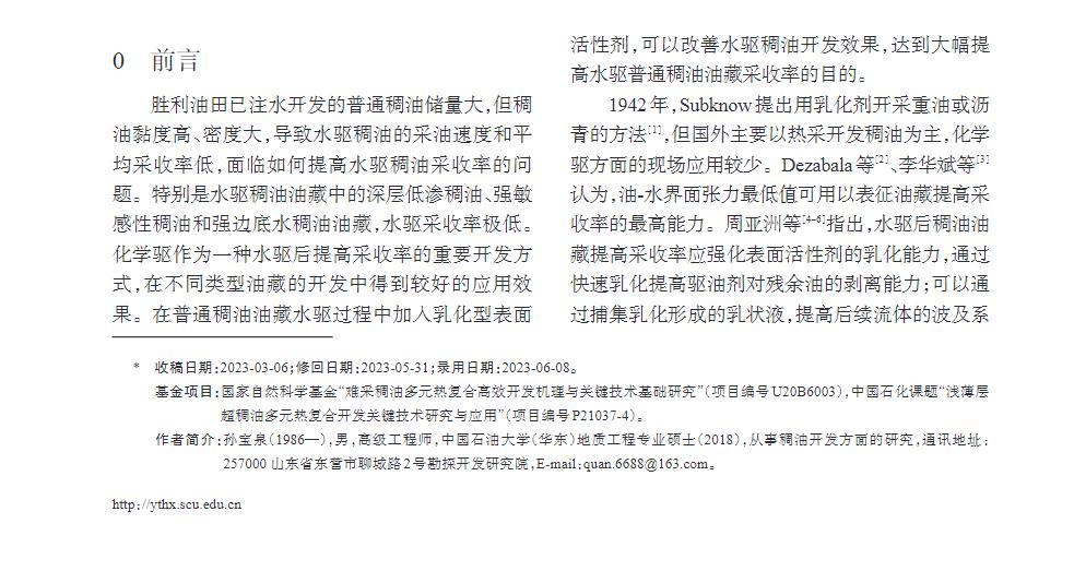 研究結(jié)果為水驅(qū)稠油開發(fā)用驅(qū)油劑的研發(fā)提供參考,為大幅提高水驅(qū)普通稠油采收率奠定基礎(chǔ)。