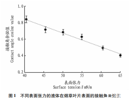 [方法]通過測定4種增效助劑使用下9種煙草常用化學農藥表面張力值,以煙草葉片臨界表面張力為判定指標,篩選適用于不同化學農藥的增效助劑種類和劑量。