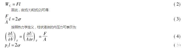 式(7)實際上就是式(5)。這就是說,將體積為V的液體從體相反抗內壓力移至表面需做的可逆功與將液體分成兩半需做的可逆功等價,都等于表面自由能2σA。