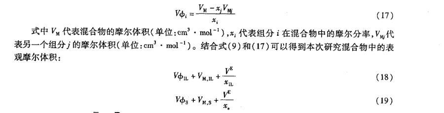 二元混合物中組份i的表觀摩爾體積Vφi可由下式計算得到: