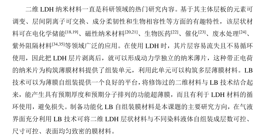 分子自組裝的基本過程是系統中的分子無序到有序聚集成納米尺度的聚集體,利用分子自組裝技術制備的功能化復合材料具有廣泛的應用價值。水滑石(LDH)這類陰離子型層狀材料因結構的特殊性,在催化、生物傳感、藥物儲存-遞送代理、電化學儲能等各種技術領域有廣泛應用。近幾年研究發現,在使用LDH粉體過程中,分散片層容易丟失還不易被回收。因此,用LDH分散片組裝制備新型功能薄膜材料成為現今研究的熱點問題。