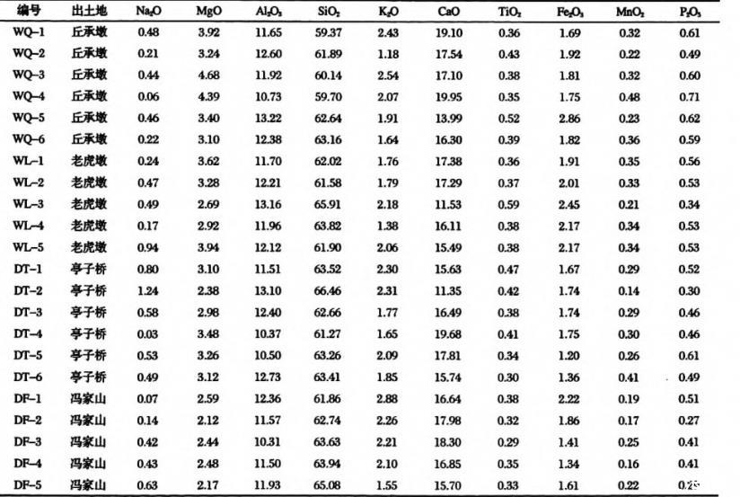 表1無(wú)錫鴻山貴族墓、德清窯址出土原始青瓷樣品釉的主、次量元素組成(wt%)