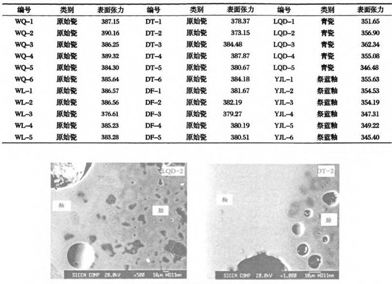 表4原始瓷和成熟瓷器釉在1200℃時(shí)的表面張力值(mN/m)
