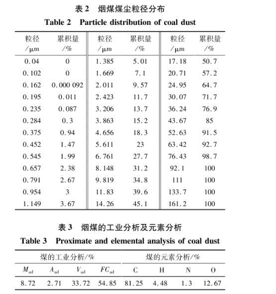 利用激光粒度分析儀對實驗用的煤塵粒徑分布特征測試,結果見表2。