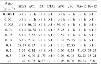 表4煤塵在表面活性劑溶液中的沉降時(shí)間