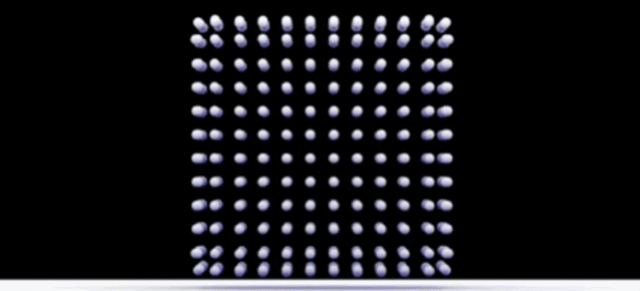 模擬正方體形水分子在重力、表面張力、內部斥力共同作用下在平衡狀態趨于球狀