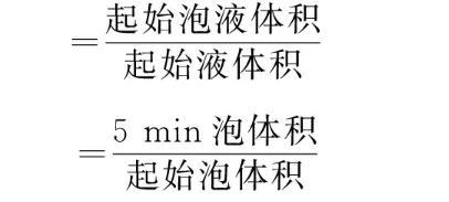 泡沫性能:用振蕩法測定,即室溫(25℃)下,在100 mL具塞量筒中加入30 mL質量分數為0.5%或0.1%的待測溶液,用力振蕩10次,記錄泡沫和液體的總體積。靜置5 min,記錄泡沫體積。發泡力和穩泡性計算公式: