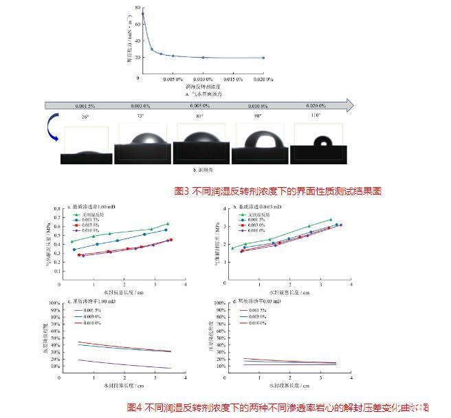 3.1.3.1不同潤濕反轉劑濃度下的氣水界面張力與潤濕性變化