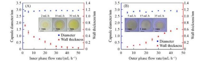 2.3內相/外相流速對水/水微囊直徑和壁厚的影響