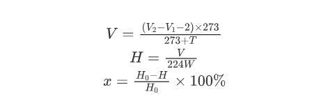 式中:V為在1個標準大氣壓、273 K的條件下生成氫氣的體積,mL;V 1為反應前堿式滴定管的讀數,mL;V 2為反應后堿式滴定管的讀數,mL;T為反應溫度,℃;H為反應產物的含氫量,10-2 mol/g;W為樣品質量,g;x為MDHM轉化率;H 0為反應前產物的含氫量,10-2 mol/g。