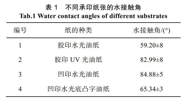 表2普通商用油墨對于不同承印紙張的接觸角和界面張力
