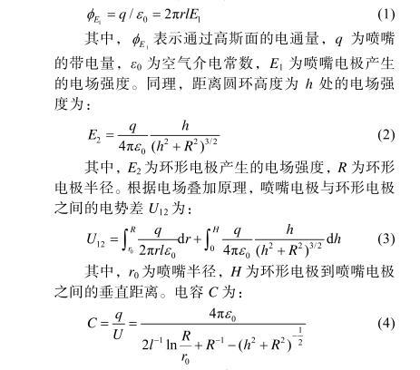 其中,r0為噴嘴半徑,H為環形電極到噴嘴電極之間的垂直距離。電容C為: