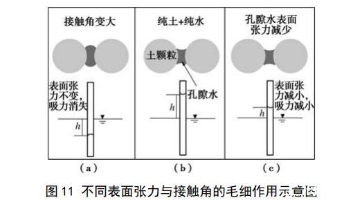圖11不同表面張力與接觸角的毛細作用示意圖