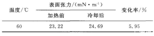 將助排劑AO-4放入烘箱,溫度設置為60℃,放置2 h后,冷卻至室溫,測試其表面張力,結果見表2。