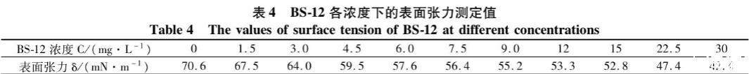 表4 BS-12各濃度下的表面張力測(cè)定值