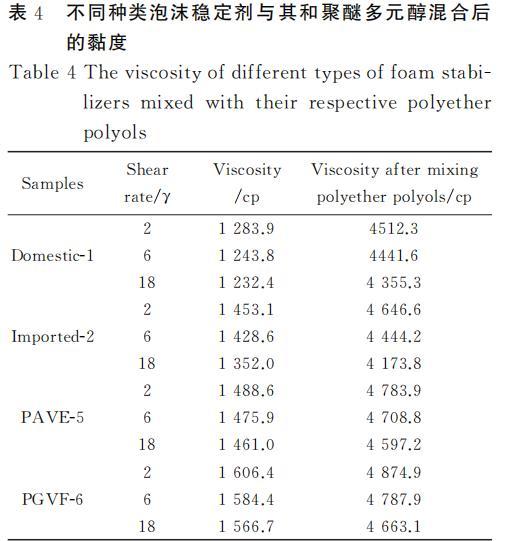 表4不同泡沫穩(wěn)定劑與對應(yīng)聚醚多元醇混合后的黏度