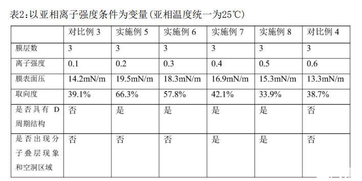 ?對比實(shí)驗(yàn):亞相溫度過高(>30°C)或離子強(qiáng)度過低(<0.2)會導(dǎo)致纖維排列混亂(對比例1–4),超純水亞相則無法形成D周期結(jié)構(gòu)(對比例5)。