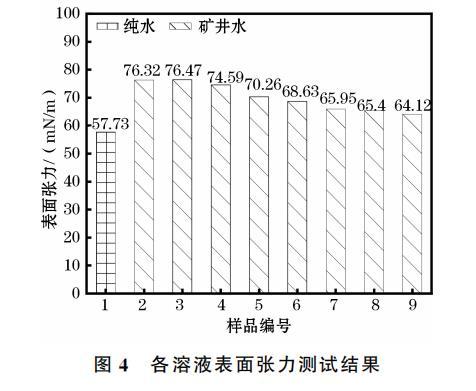 各溶液表面張力測(cè)試結(jié)果如圖4所示。