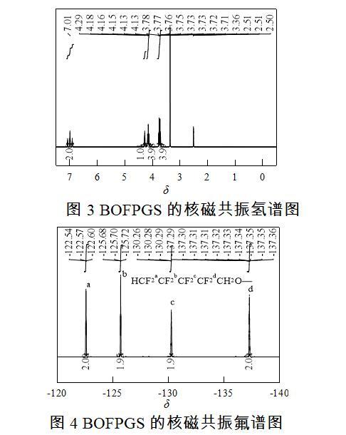 結合以上數據分析可知,本研究成功合成了2,3-雙八氟戊烷基-1-丙醇和BOFPGS。