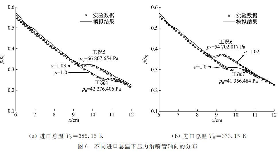 圖 6 不同進(jìn)口總溫條件下噴管軸向壓力分布