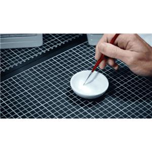 將幾滴油漆放到調(diào)色皿內(nèi),加少量稀料。