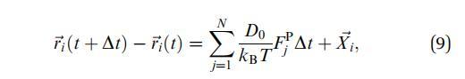 其中,F(xiàn)Pj是由于所有其他N 1圓盤作用在圓盤j上的直接總力,D0是圓盤擴散系數(shù),kB是玻爾茲曼常數(shù),T是溫度,%Xi是源于溶劑-粒子碰撞的粒子i的隨機位移矢量。%Xi從具有零均值和協(xié)方差矩陣的高斯分布中采樣: