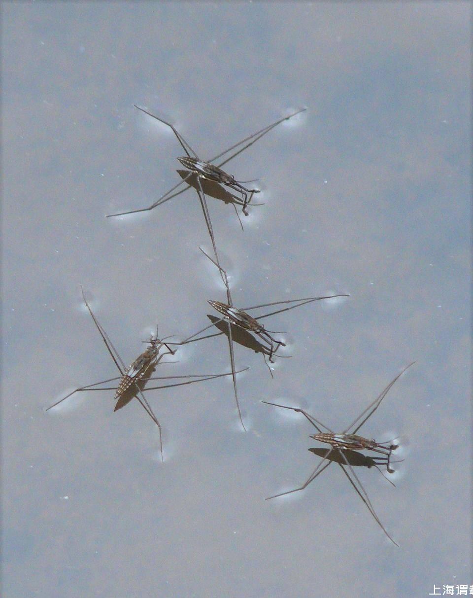 有一種叫水黽的昆蟲(chóng),它就依靠長(zhǎng)長(zhǎng)的腿在水面行走如飛。