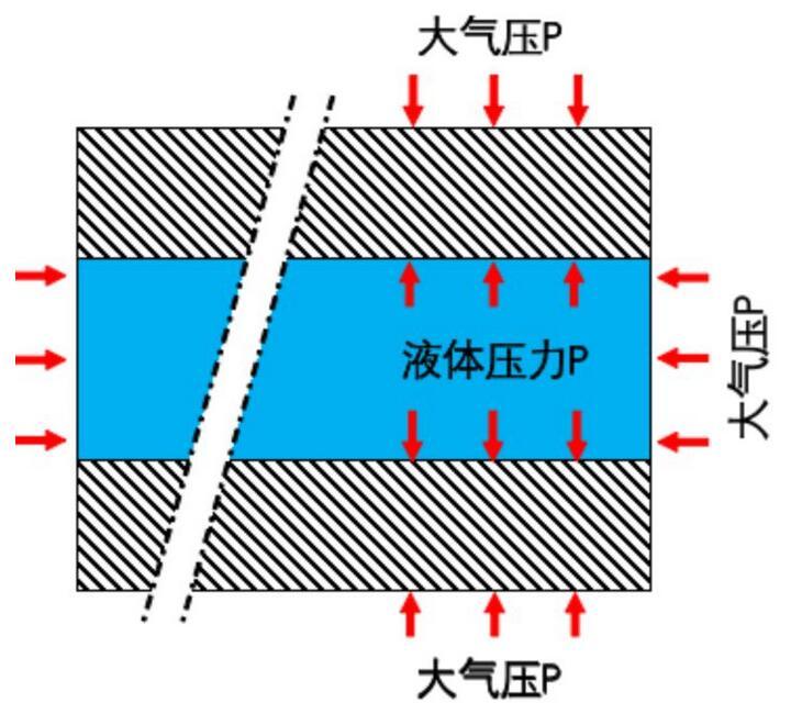流行科普上講,由于玻璃之間充滿了水,它們之間沒有空氣,因而靠大氣壓就可以把它們緊密地擠壓在一起。如下圖所示: