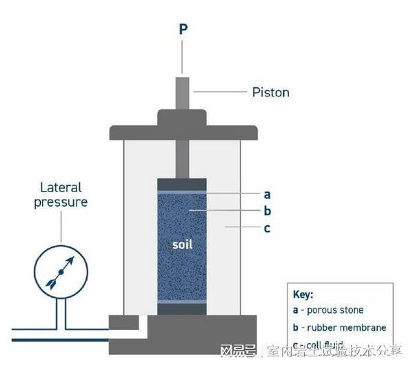 典型的三軸試驗涉及將高度直徑比為2:1的密封圓柱形土壤試樣限制在加壓壓力室中,以模擬定義的應力條件。然后對試樣進行剪切,直到破壞,從而確定其剪切強度特性。試樣通常先飽和,然后固結,最后剪切,大多在壓縮條件下。