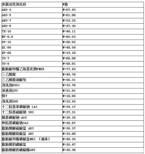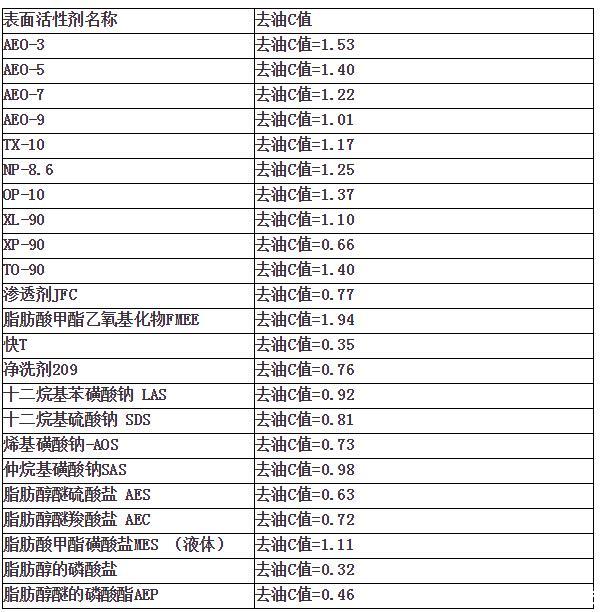 目前市場上常見的各種表面活性劑,包括非離子、陰離子最常用兩大類的耐堿、凈洗、除油和除蠟性能的比較。