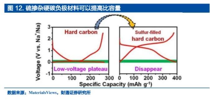 可以用作鈉電池負極的無定形碳主要分為硬碳和軟碳。其中在2500°C以上的高溫下能石墨化的為軟碳,在2500°C以上的高溫下不易石墨化的為硬碳。無定形碳儲鈉能力好、可逆比容量高、循環性能好,商業化趨勢明顯。同時軟碳和硬碳都可以通過原子摻雜提高材料的層間距,制備納米結構碳材料縮短鈉離子擴散途徑等方式提高電化學性能。