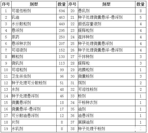 表2新煙堿類農藥目前在我國登記的劑型及數目匯總