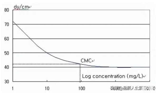 而電鍍液的潤(rùn)濕性是可由液體的表面張力來(lái)做控制及分析,由表面張力的理論得知,若電鍍液的表面張力愈小,表示電鍍液的內(nèi)聚力愈小、愈容易滲入細(xì)小的縫隙裡面、也愈容易於被鍍物表面潤(rùn)濕讓金屬離子鍍上去。因此為了使電鍍液的表面張力降低或是增加電鍍後的品質(zhì),通常於電鍍液中會(huì)加入有機(jī)添加劑(光澤劑,結(jié)構(gòu)改良劑,潤(rùn)濕劑..等),其中潤(rùn)濕劑即是在使鍍液表面張力降低的作用。然而當(dāng)這類界面活性劑添加超過(guò)CMC點(diǎn)後,表面張力即不再改變(如下圖)。此時(shí)過(guò)量的添加不但沒(méi)達(dá)到效果反而增加了生產(chǎn)成本。因此CMC點(diǎn)便可作為電鍍液的監(jiān)控標(biāo)準(zhǔn)值,來(lái)決定何時(shí)添加及添加的量。