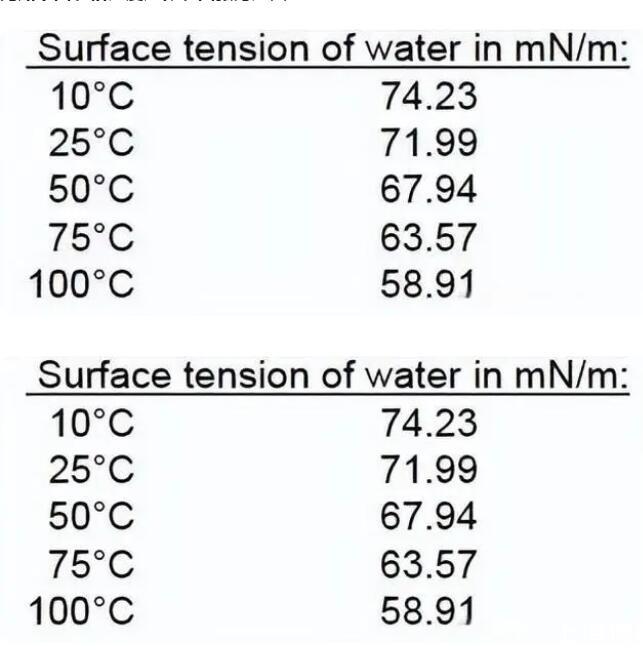 比如下面表格在10攝氏度時(shí)不同液體的表面張力差異很大
