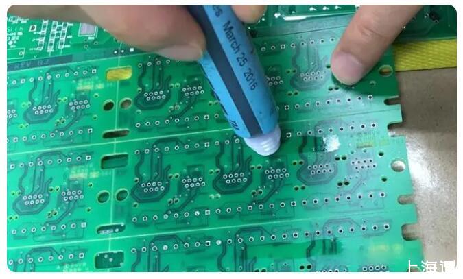 測(cè)量PCB表面的張力主要是通過(guò)便攜式的測(cè)試筆,里面含有特定的張力測(cè)試液體,像是通常我們使用的大頭油性筆似的,測(cè)試時(shí)只要輕輕在需要測(cè)試的表面畫一條直線,待2-3秒鐘過(guò)后,觀察畫的直線是否附著均勻,沒(méi)有收縮成水珠狀,說(shuō)明達(dá)到了該測(cè)試筆設(shè)定的張力,張力的單位為達(dá)因/厘米(dyne/cm),有時(shí)又稱測(cè)試筆為達(dá)因筆。具體測(cè)試筆品牌這里就不給做廣告了,這個(gè)測(cè)試在市面上也很容易買到。測(cè)試的方法也比較簡(jiǎn)單,為了確定張力的范圍,一般必須準(zhǔn)備至少2只測(cè)試,一般測(cè)試的張力區(qū)間在+/-2達(dá)因/厘米之間。