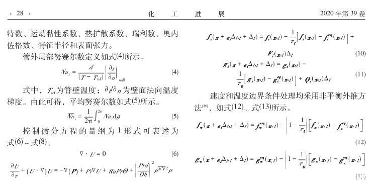 【摘要】:采用格子-玻爾茲曼方法 (LBM)構(gòu)建了考慮表面張力影響下封閉腔體內(nèi)加熱圓柱外自然對(duì)流數(shù)學(xué)模型。在分別對(duì)自然對(duì)流與表面張力模型模擬驗(yàn)證的基礎(chǔ)上,探究了液固表面張力與重力場下浮升力同時(shí)作用下加熱圓柱外流體自然對(duì)流的傳熱特性。結(jié)果表明,在給定Ra數(shù)下(103≤Ra≤106),隨著表面張力的增大(Oh數(shù)減小),封閉腔體內(nèi)管外自然對(duì)流擾動(dòng)會(huì)加劇,流型會(huì)變復(fù)雜,壁面換熱效率有明顯提高。