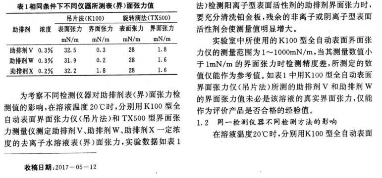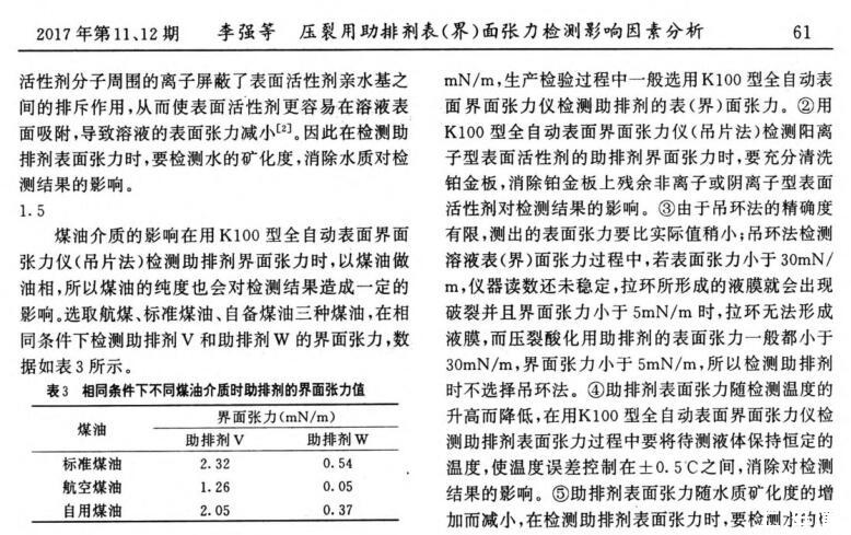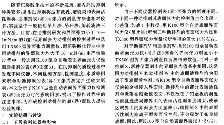 壓裂用助排劑表(界)面張力檢測影響因素分析