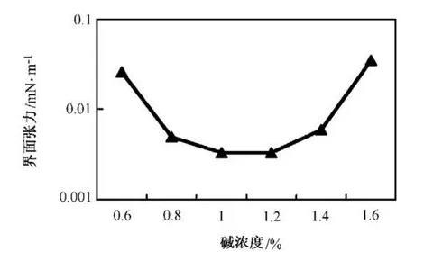 堿、表面活性劑濃度變化對三元復合體系界面張力的影響