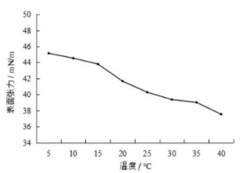 將配制好的合成血液分別放置5℃~40℃的環(huán)境中1小時(shí),然后取出測(cè)定其表面張力,每個(gè)溫度連續(xù)測(cè)定5次并取其算術(shù)平均值作為表面張力的結(jié)果。