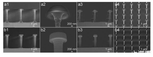 但是,現有技術中制備得到的雙內凹結構尺寸均在幾十微米以上,雖然能夠實現低表面張力液體的超排斥,但這種排斥性極不穩定,如空氣流動或者液滴自身運動都會導致液體塌陷并濕潤固體表面。